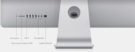 En las conexiones vemos que se ha añadido un nuevo puerto Thunderbolt, la ranura para tarjetas SD cambia a la parte trasera y desaparece la entrada de audio y el puerto Firewire. Personalmente no estaría mal que hubiesen dejado en un lateral la ranura para SDXC y añadieran al mismo un puerto usb, ya que es engorroso tener que levantarte de tu silla cada vez que quieres conectar un pendrive o tarjeta.