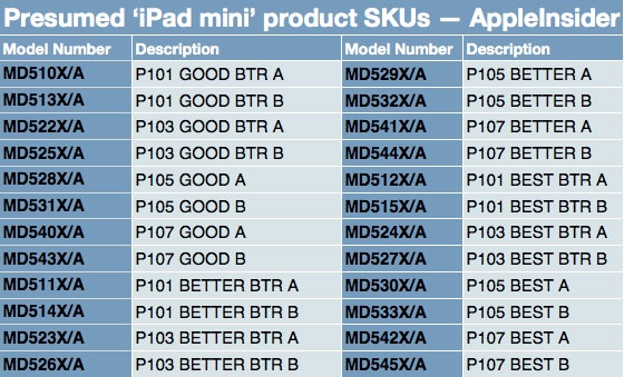 AppleInsider ha colgado una lista con 24 modelos del iPad mini, en diferentes colores, capacidad y conectividad.