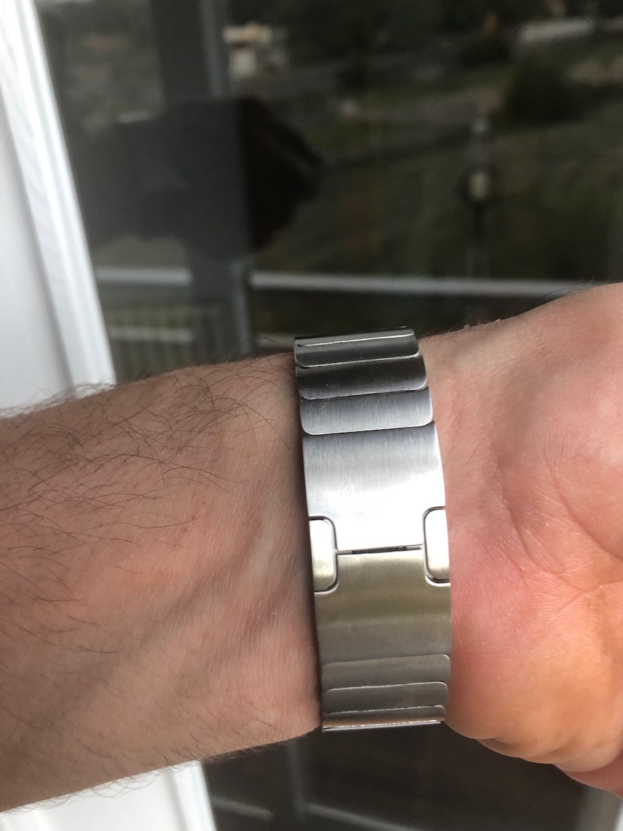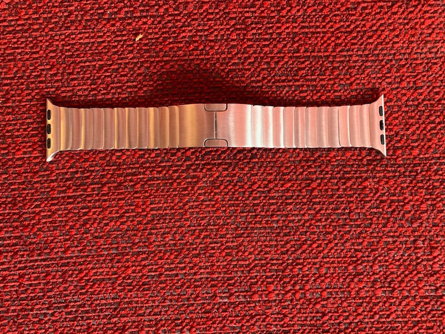 En primer lugar, decir que la correa OULUOQI es compatible con los modelos 1, 2, 3 y 4 del Apple Watch, estando disponible en diferentes longitudes. El accesorio está compuesto de bandas de metal que se pueden ajustar fácilmente, y cuyos enlaces se pueden modificar para que esté bien puesta en vuestras muñecas. El metal incluido es mecánico y muy resistente, lo que garantiza que la correa durará bastante tiempo.